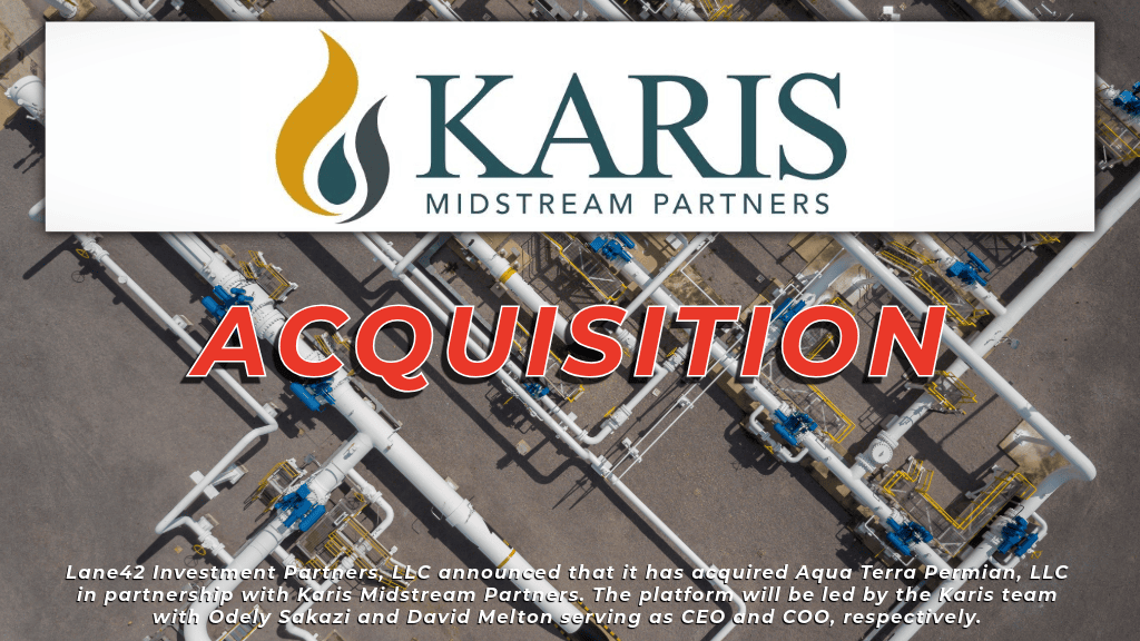 “In Lane42, David Melton and I have found a partner that shares our vision for building a scaled, water-focused midstream company,” commented Odely Sakazi, CEO of Karis. “We are excited to grow alongside our customers and to continue to deliver the high level of service they have come to expect from the Aqua Terra Permian team.”